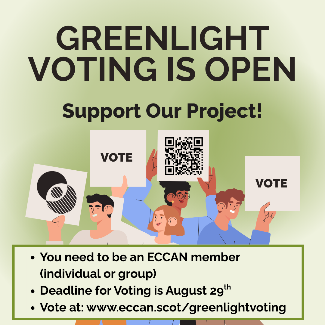 Now, we need your support to keep the project going. We’re shortlisted in the £500–£1,000 category of the ECCAN Green Light Fund. To cast your vote, you’ll need to vote in all five categories – but it’s quick, simple, and free.